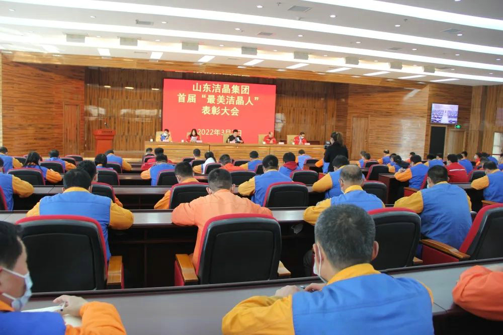 2022年3月7日,潔晶集團(tuán)召開首屆“最美潔晶人”表彰大會,集團(tuán)領(lǐng)導(dǎo)為獲此榮譽的職工頒發(fā)獎杯和證書。