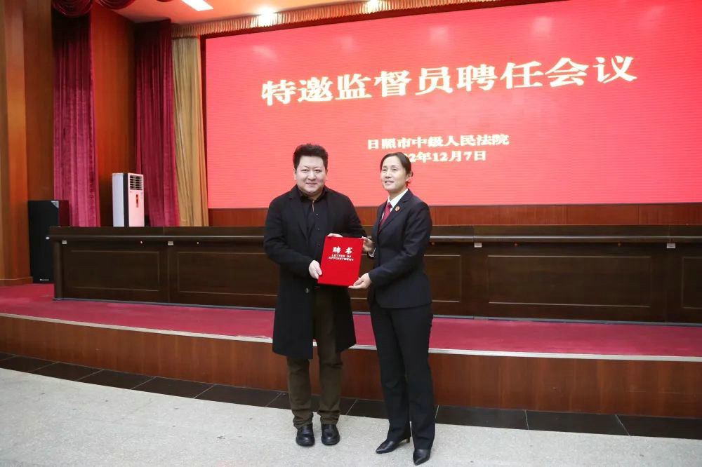 2022年12月7日,日照市中級人民法院召開特邀監(jiān)督員聘任會議,潔晶集團(tuán)總裁林成彬被聘任為特邀監(jiān)督員并作為特邀監(jiān)督員代表做了發(fā)言。